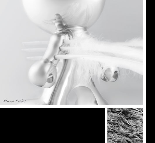The work of Heike Buchfelder is a symbiosis of natural feathers and clear, geometric forms to create extraordinary objects. The objects illustrate two opposing sides: one shows the soft, fluffy, natural flowing beauty and the other, the hard and minimalistic rigidity of the form. | www.pluma-cubic.com
